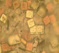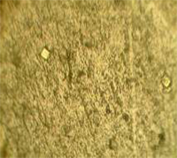 Photograph 4 – A 400x view of the surface of a coating incorporating structured micro taggants to permit authentication of a product simply by microscopic examination.