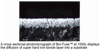 Bor-Fuse™ is accomplished at temperatures between 850° and 950°C in an inert or reducing atmosphere. This results in the formation of a surface layer of iron boride that has a tetragonal structure and hardness values in the range of VHN100= 2000.